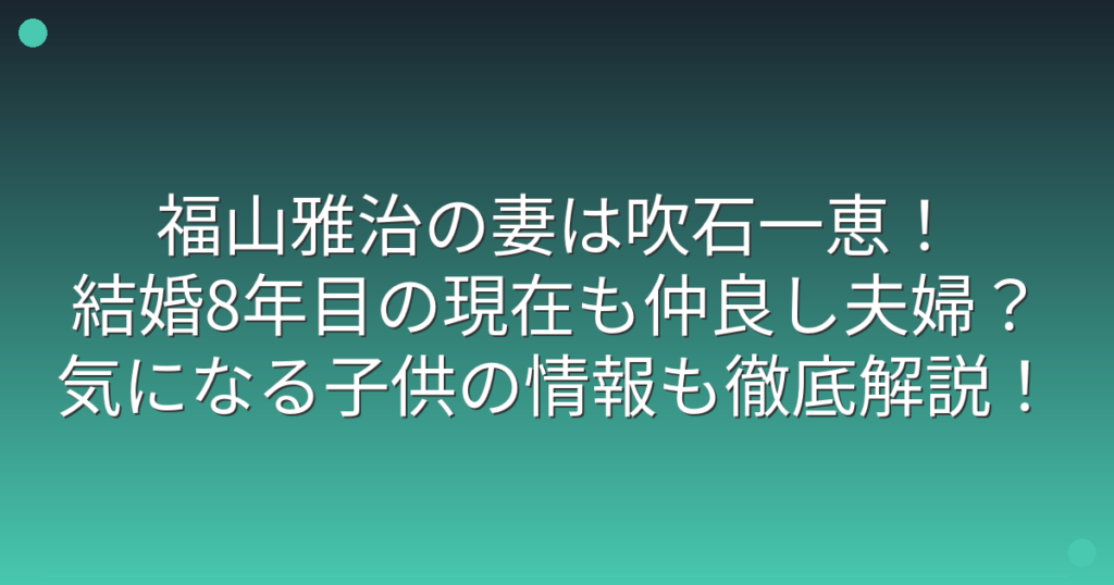 福山雅治の妻は吹石一恵!結婚8年目の現在も仲良し夫婦?気になる子供の情報も徹底解説!