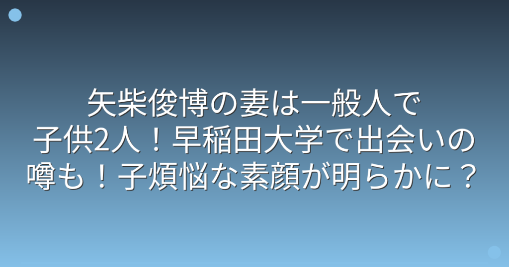 矢柴俊博の妻は一般人で子供2人!早稲田大学で出会いの噂も!子煩悩な素顔が明らかに?