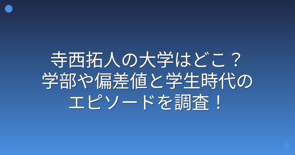 寺西拓人の大学はどこ?学部や偏差値と学生時代のエピソードを調査!