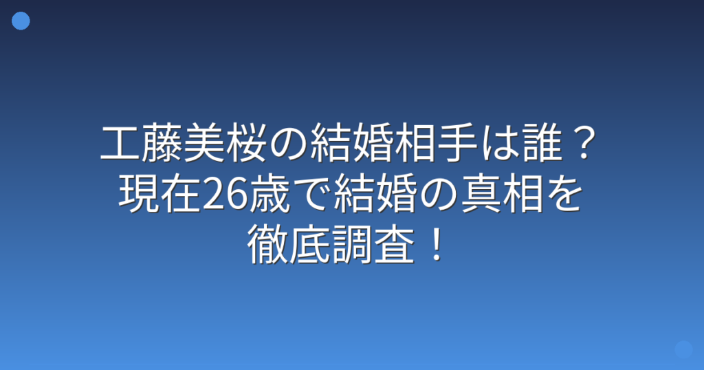 工藤美桜の結婚相手は誰?現在26歳で結婚の真相を徹底調査!