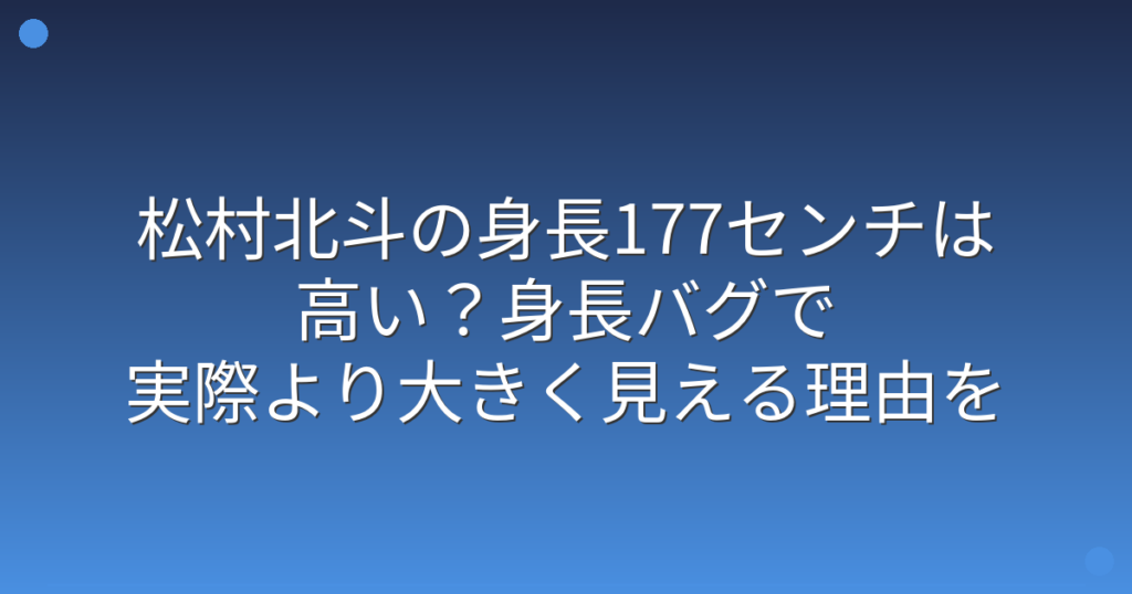 松村北斗の身長177センチは高い?身長バグで実際より大きく見える理由を調査!