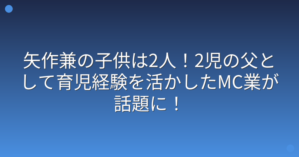 矢作兼の子供は2人!2児の父として育児経験を活かしたMC業が話題に!