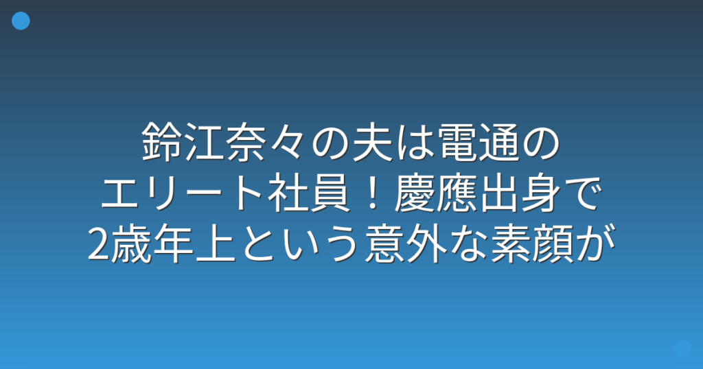 鈴江奈々の夫は電通のエリート社員!慶應出身で2歳年上という意外な素顔が判明!