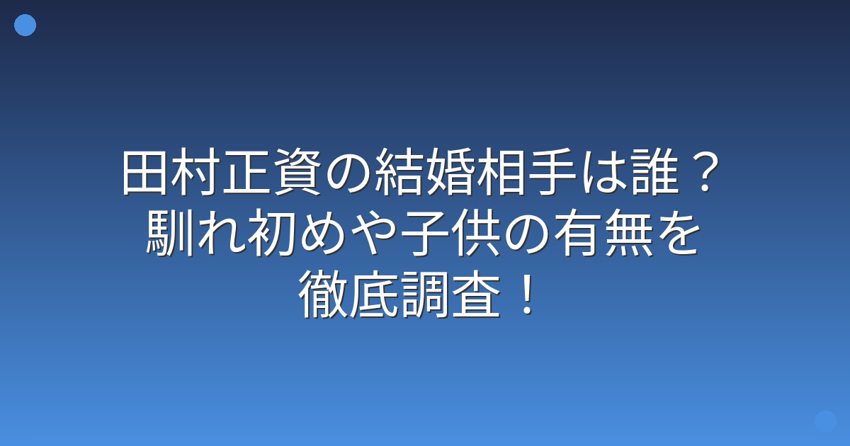 そこで今回は、田村正資さんの結婚相手や馴れ初め、子供の有無について詳しく見ていきましょう!