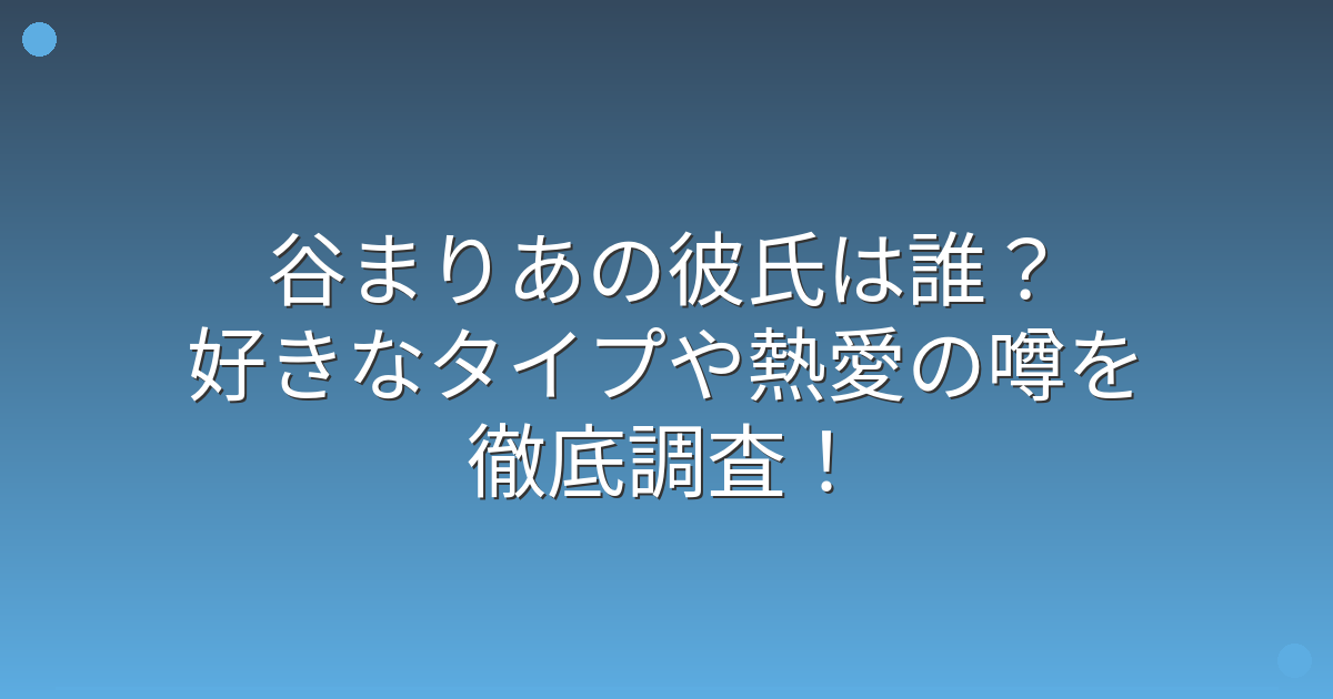 そこで今回は、谷まりあさんの彼氏や熱愛の噂、好きなタイプについて詳しく見ていきましょう!