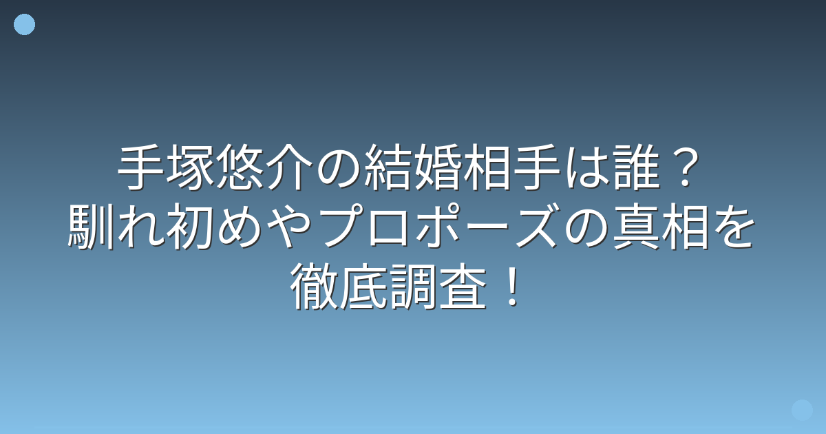 そこで今回は、手塚悠介さんの結婚に関する情報や馴れ初め、プロポーズのエピソードについて詳しく見ていきましょう!