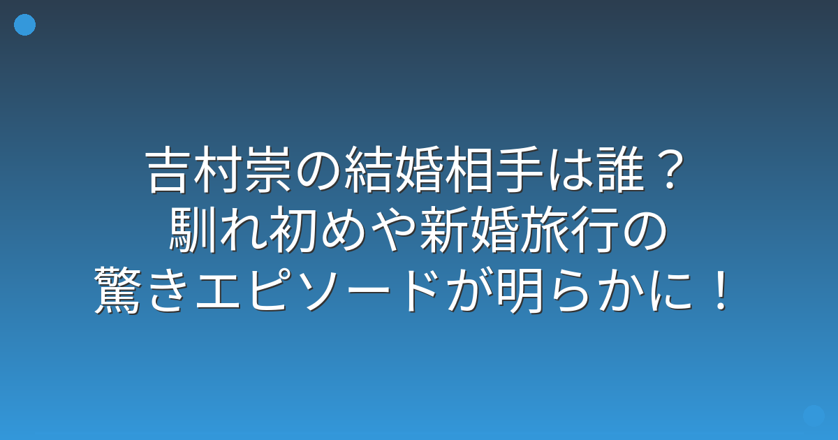 新婚旅行のエピソードは、吉村さんの人柄がよく表れた微笑ましいエピソードとして、多くの人の記憶に残ることでしょう。